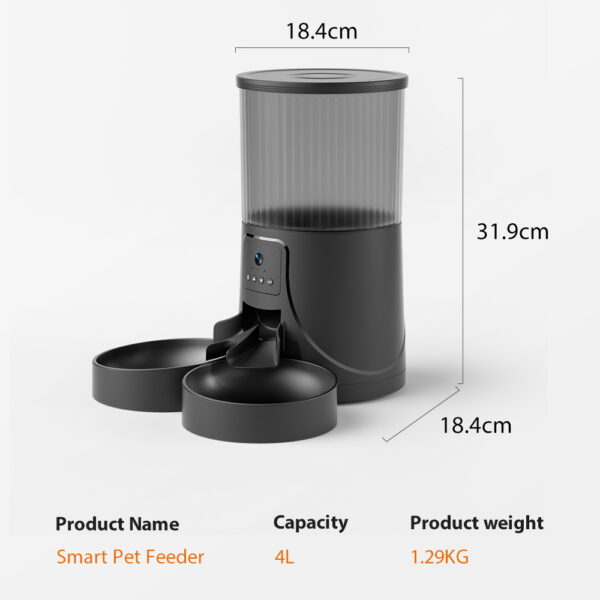 El Comedero Automático Inteligente 4L está diseñado para dueños que buscan comodidad, control y bienestar para sus mascotas. Ideal para gatos y perros pequeños o medianos, permite alimentar de forma precisa, segura y a distancia.