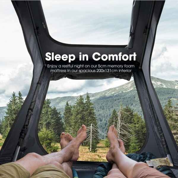 Ya no dependes del terreno, la humedad ni las rocas del suelo: tu espacio de descanso está siempre contigo, arriba de tu vehículo, con vistas únicas y la libertad de acampar donde quieras.