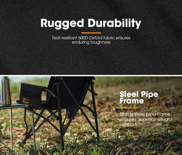 - Durable & fuerte: tejido 600D Oxford resistente al desgarro y marco de acero con soporte hasta 200 kg.